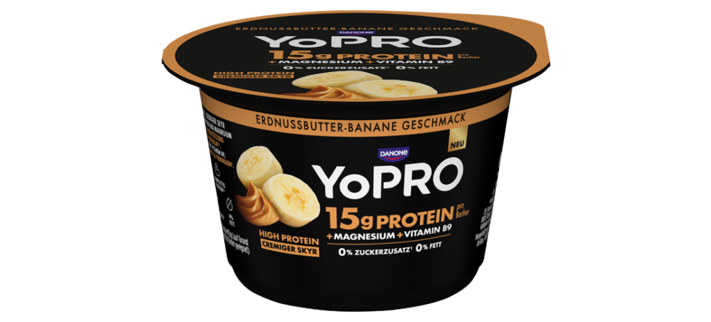 Die Marke YoPRO bietet Milchprodukte mit hohem Proteingehalt an, die fettfrei und ohne Zuckerzusatz sind, dafür mit Magnesium und Vitamin B9 angereichert werden. Magnesium trägt zu einer normalen Muskelfunktion bei, Vitamin B9 (Folat) trägt zur Verringerung von Müdigkeit und Erschöpfung bei.