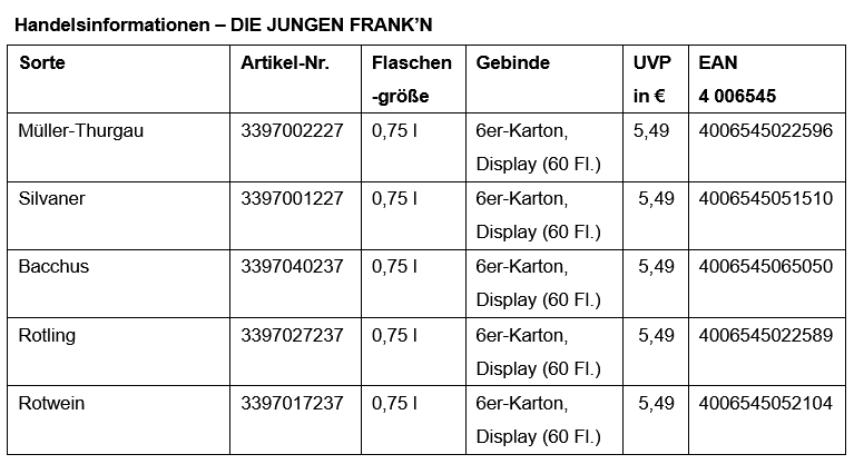„DIE JUNGEN FRANK‘N stehen wie kaum eine andere Linie für unsere Region und unsere Winzerfamilien. Gleichzeitig zeigen wir mit dem neuen Logo, dass wir unsere Traditionen wertschätzen und uns zugleich zukunftsfähig aufstellen“, betont Deutsch. „Damit schaffen wir einen klaren Mehrwert sowohl für unsere Mitglieder als auch für Handel und Verbraucher.”